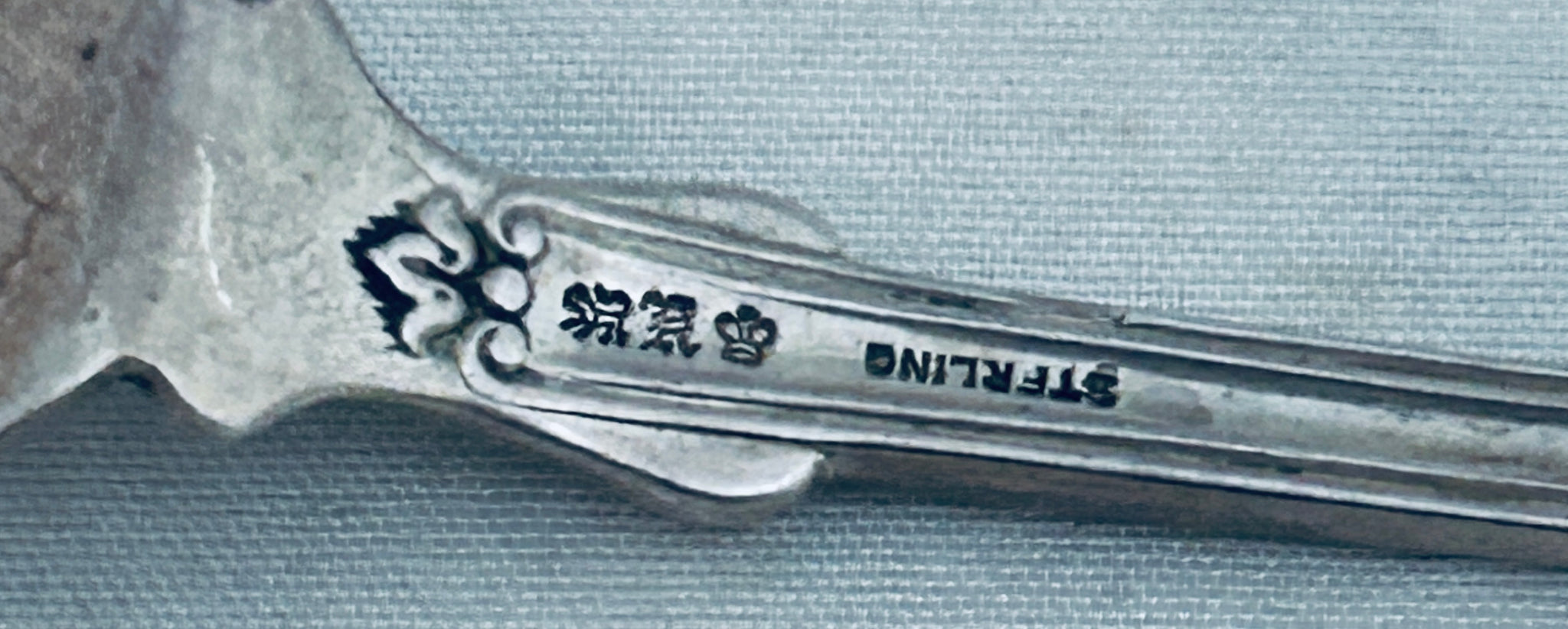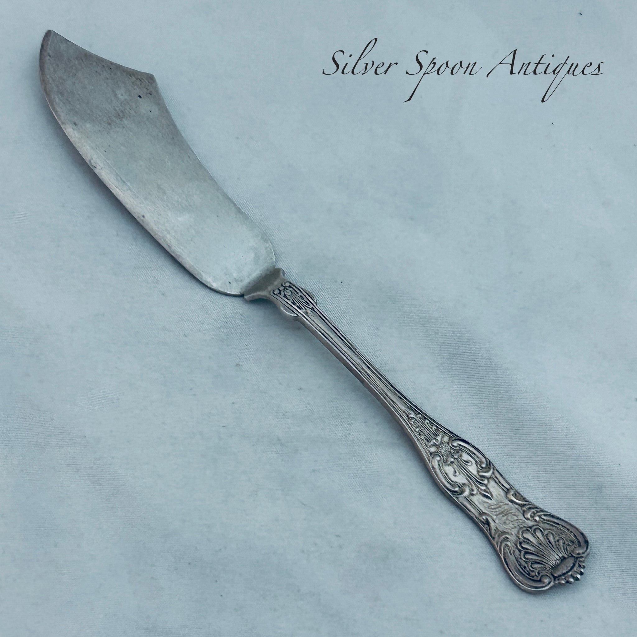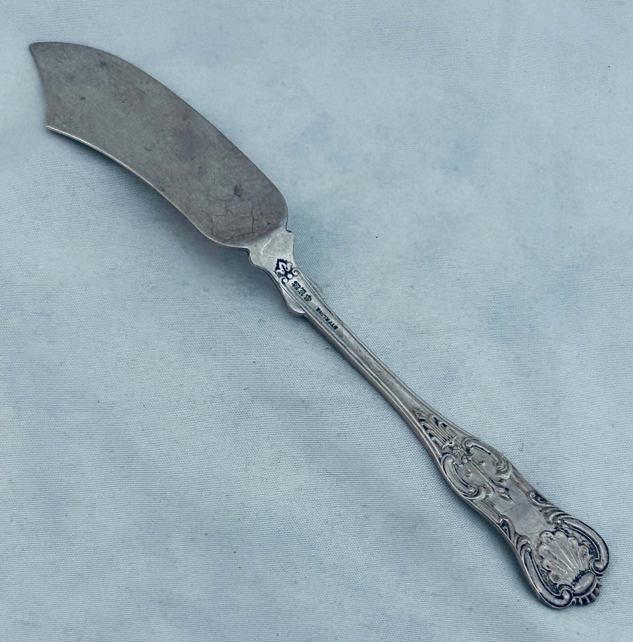 An american take on the classic English kings pattern, this solid silver butter knife is in good condition. It has a 'JMcG' monogram.