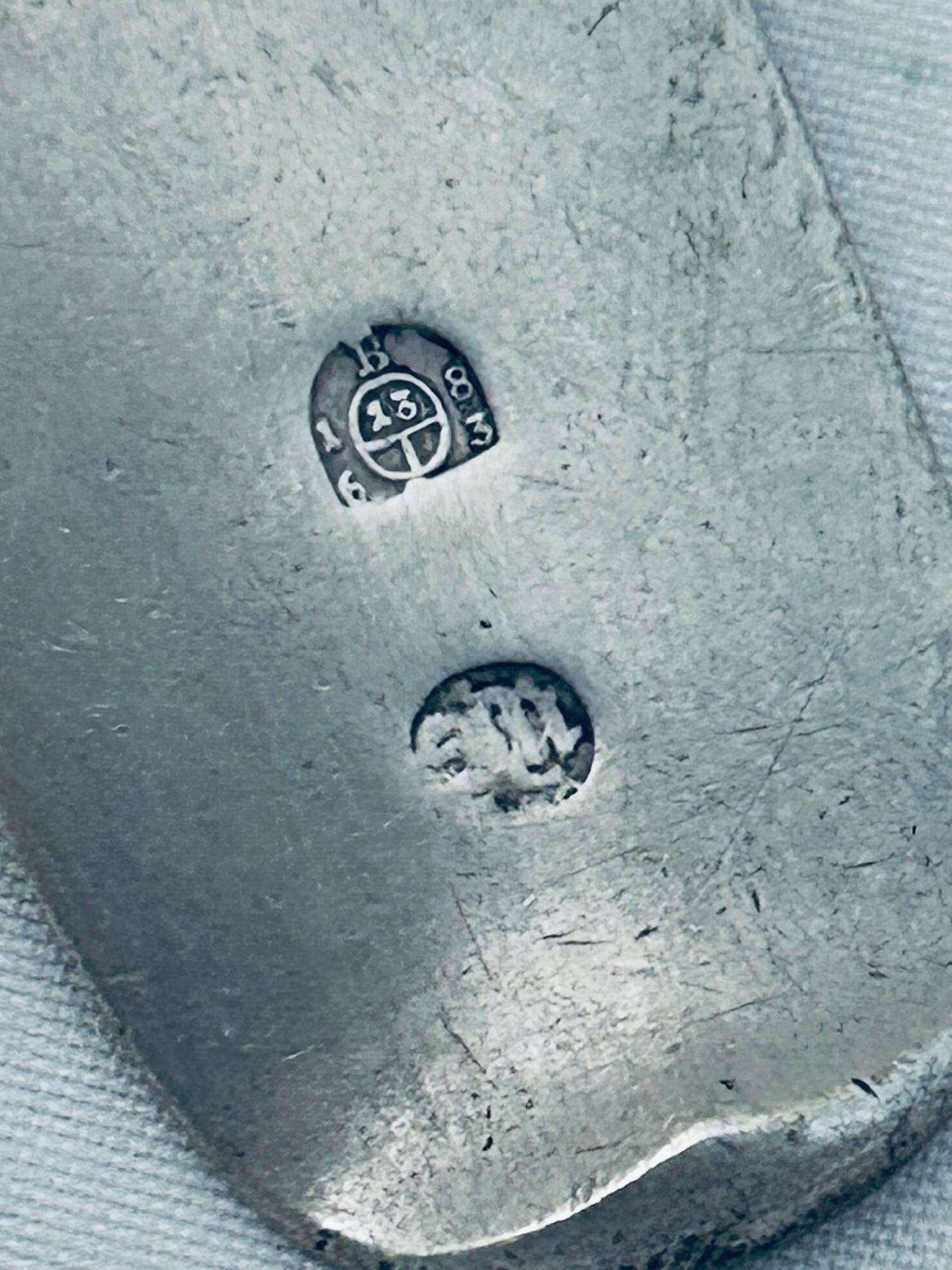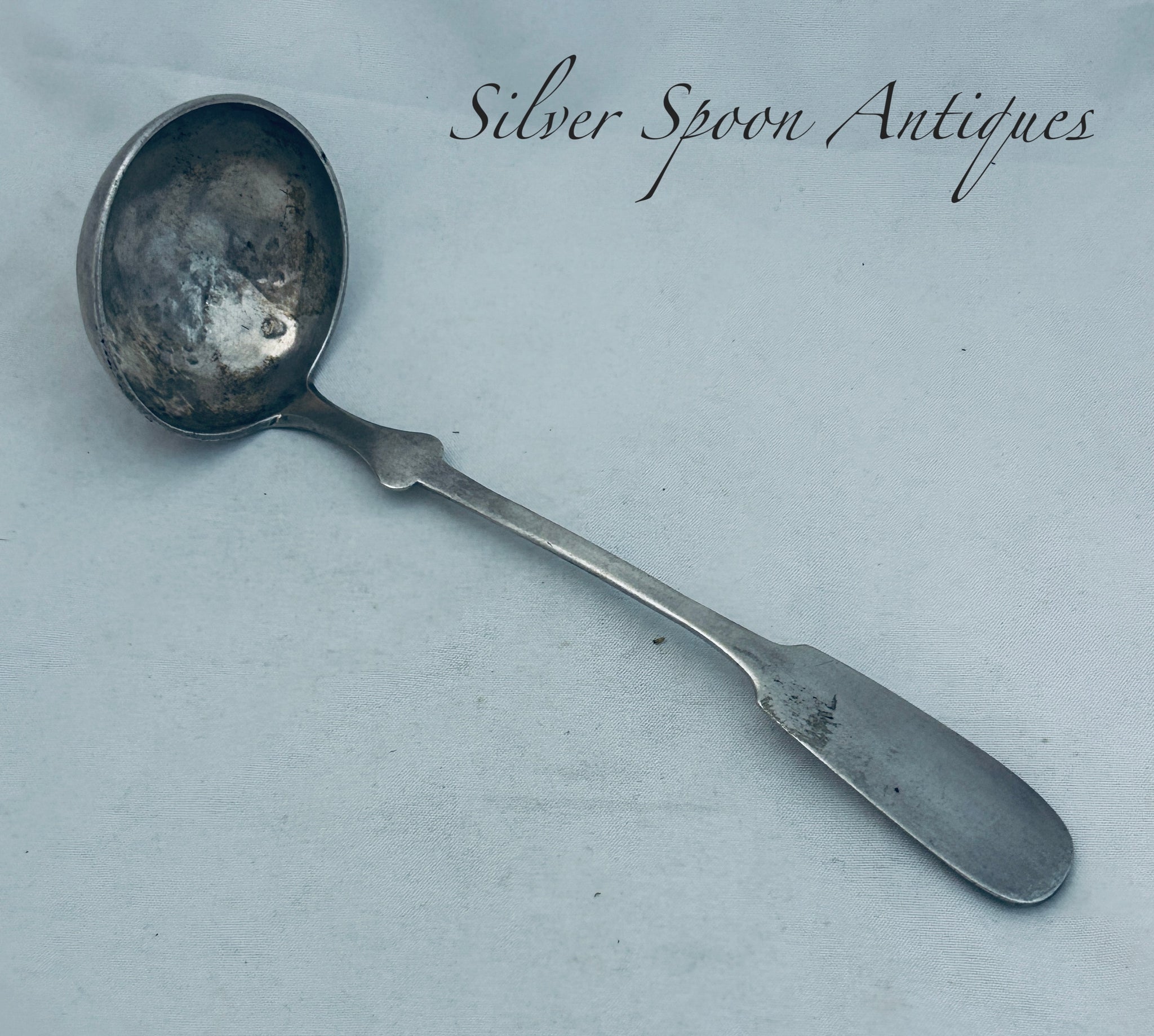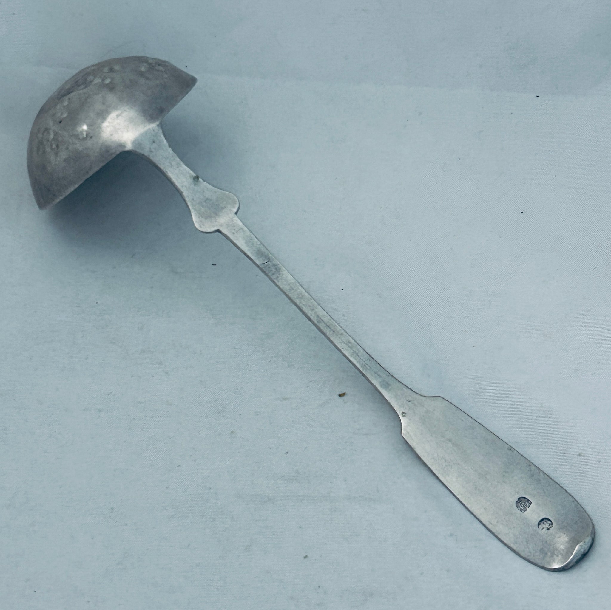 A useful bit of continental silver, this ladle was made in Prague when it was part of the Austro-Hungarian empire in 1863. It has been well used, and it looks like someone may have tried to hammer out the bumps out.