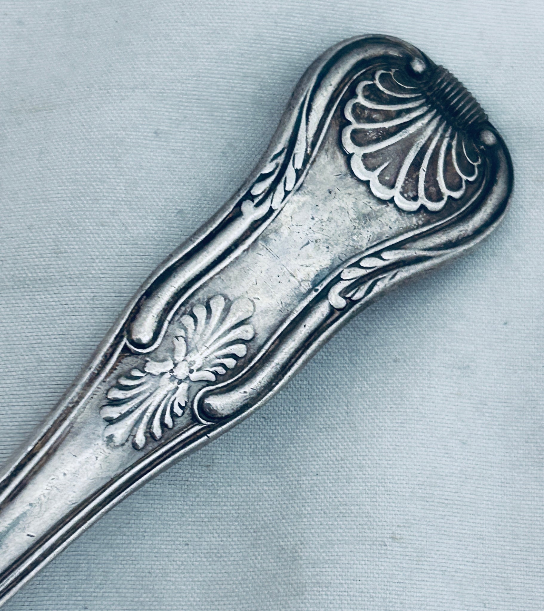 A nice early Kings Pattern solid silver tablespoon, it was made by Richard Poulden in London in 1818. It is in good condition, there may have a been a crest removal at some point.