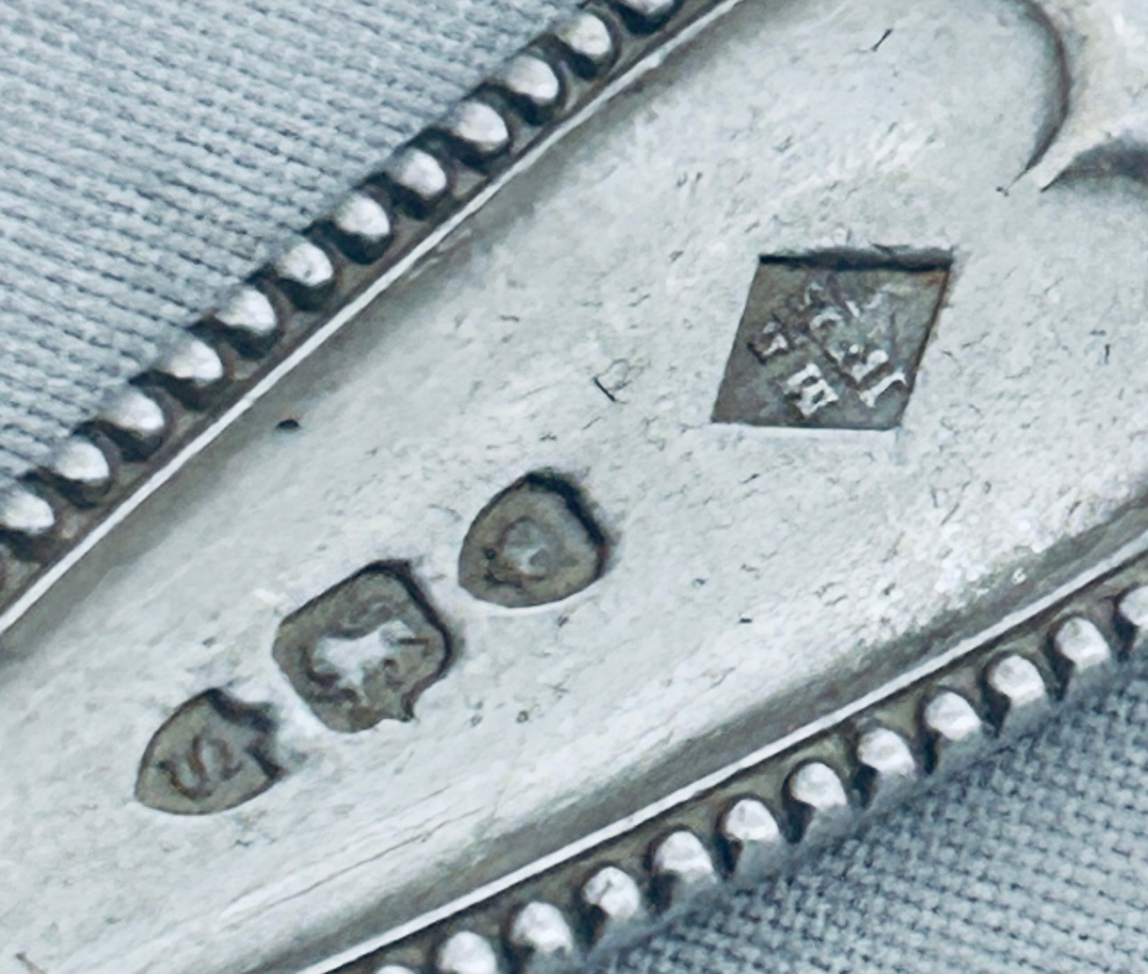 A nice set of spoons, these English silver teaspoons were made in London in 1893. The maker's mark is a little hard to read. They are monogrammed and in good overall condition.