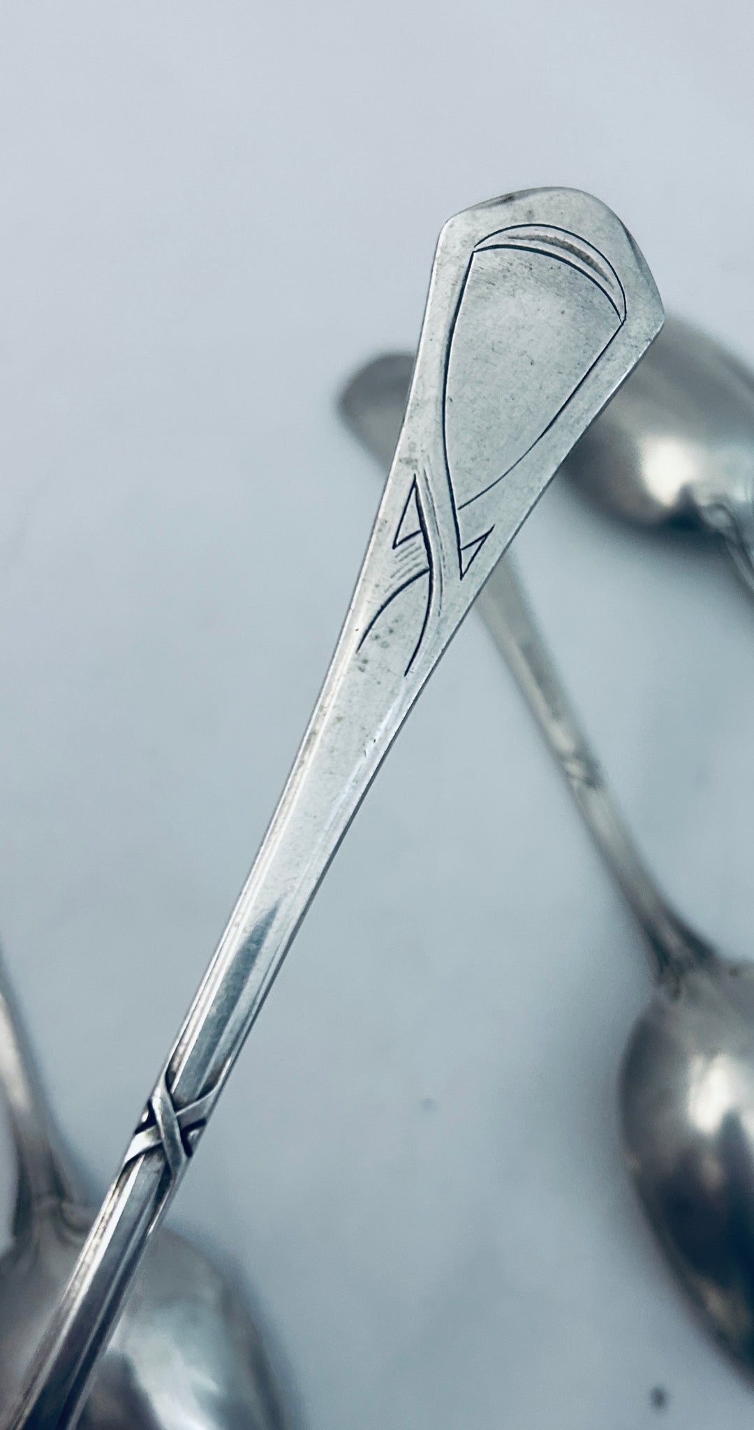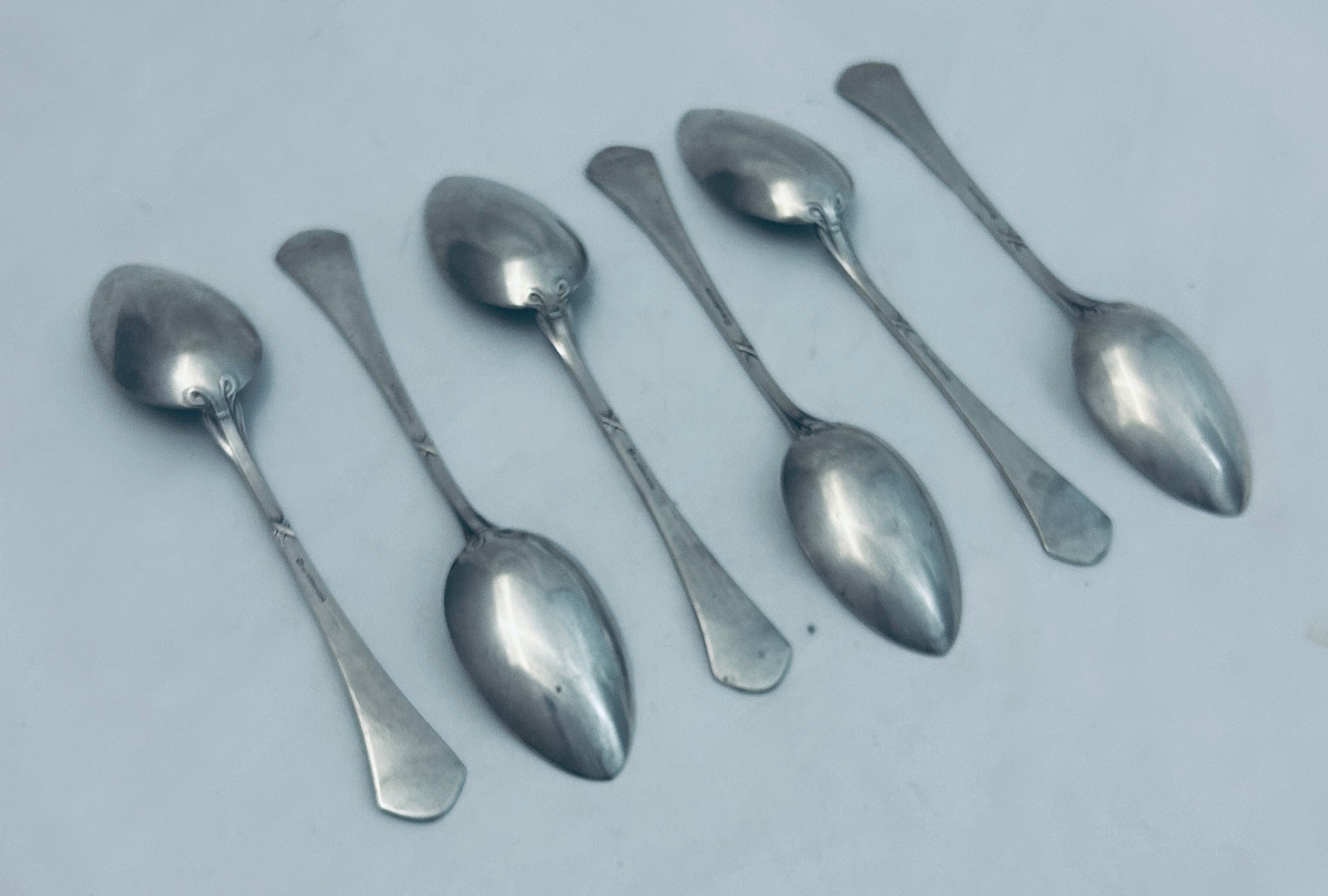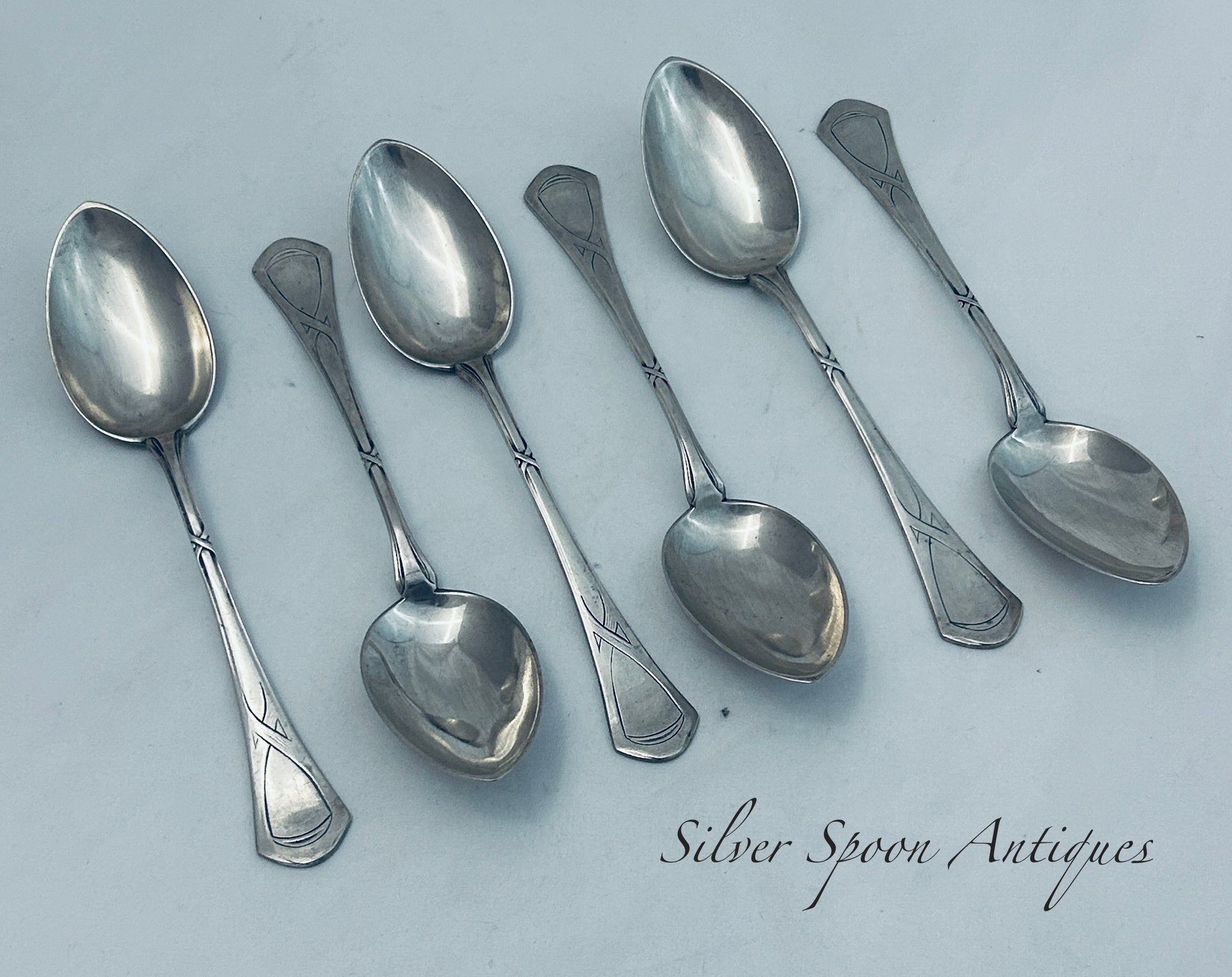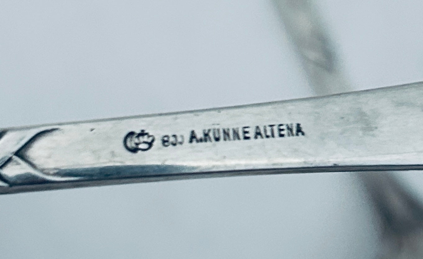A nice set of German 800 standard tablespoons, with a great jungenstil style. Made by Arnold Künne in Altena, Germany. They are in overall very good condition.