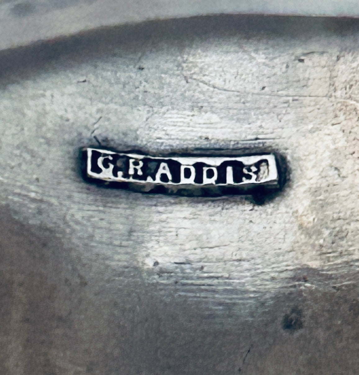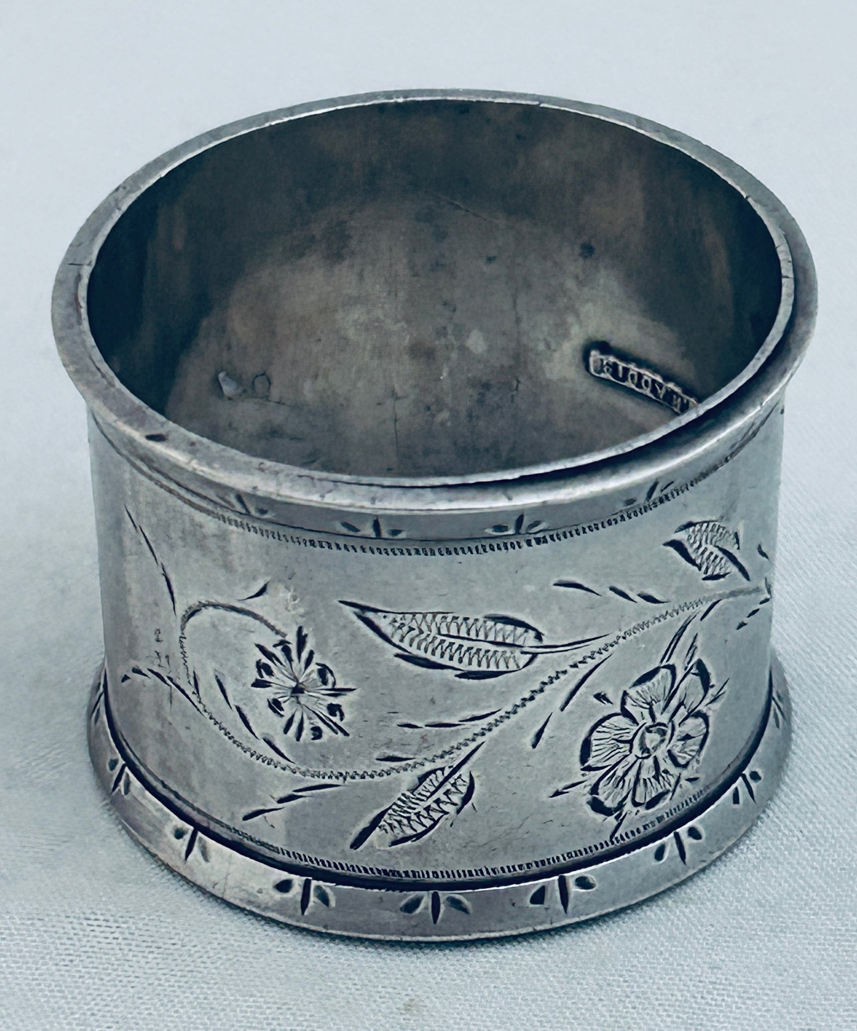 A nice piece of West Australian history, this serviette ring is marked for George Richard Addis who was working in Coolgardie from 1884 until 1937. He is known for his mining jewellery, but various serviette rings with his marks have been seen. For a great article on Addis and his life before West Australia check out https://australiana.org.au/assets/issue/Australiana_2016_2%20May_LR.pdf
