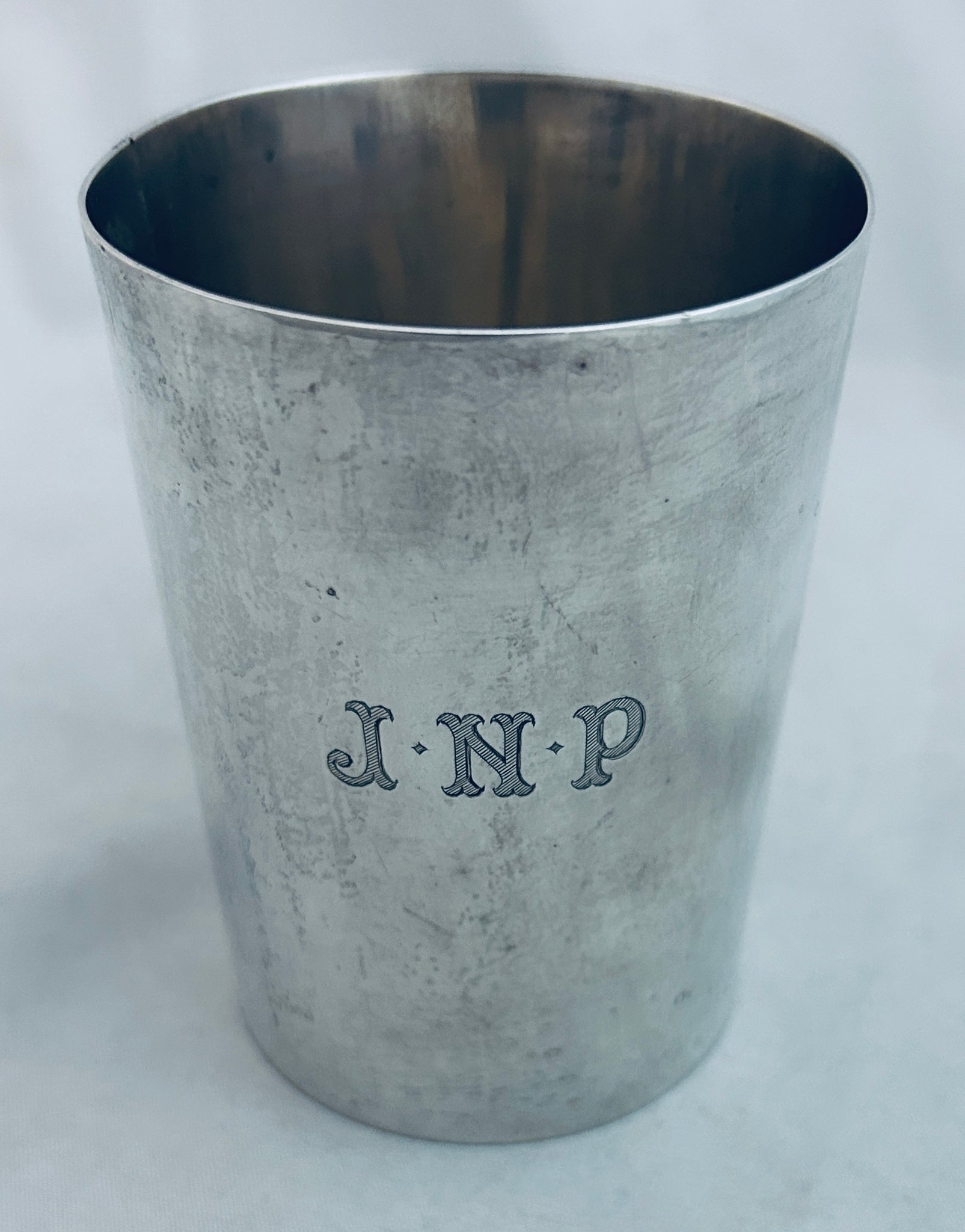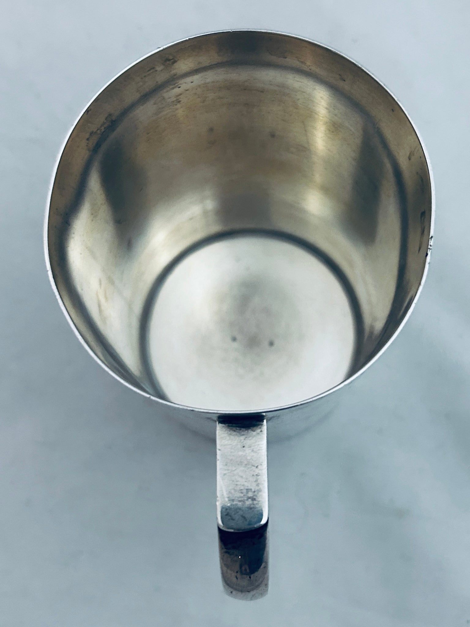 A good piece of silver, scarce as was made during World War Two. It was amde by Bert Gordon in Chester in 1944. It is engraved to the front 'J.N.P', probably as a christening gift. In good condtion.